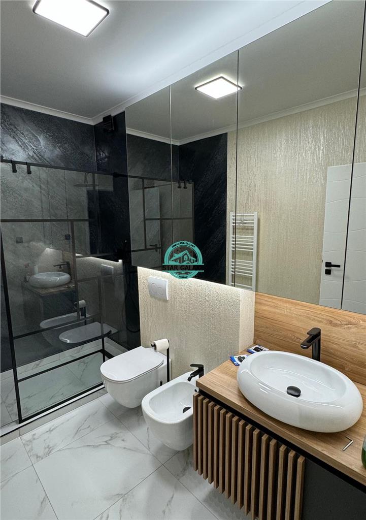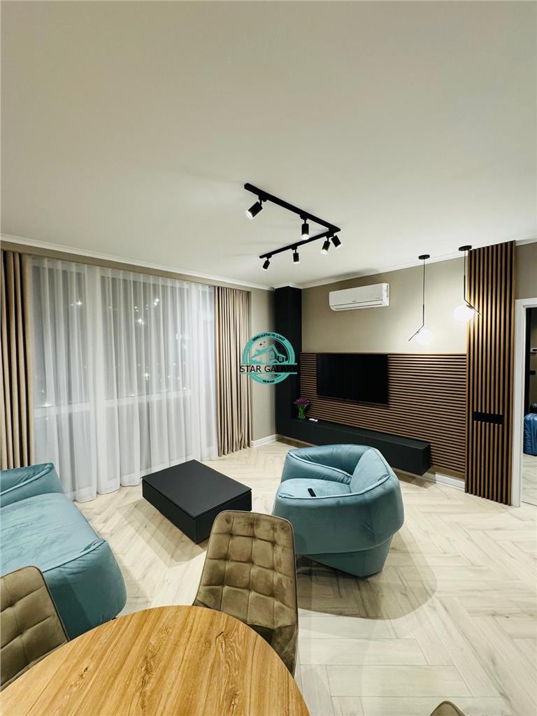 Apartamentul se afla la prima inchiriere, este mobilat si utilat lux cu electrocasnice si mobila de inalta calitate si dotat cu: centrala proprie, aer conditionat, geamuri termopan cu 3 foi, gresie, faianta, parchet si usa metalica.